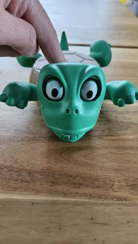 Podkładka ma wbudowany prosty mechanizm – gdy położysz na niej napój, żółw otwiera oczy i pyszczek, jakby właśnie się obudził.